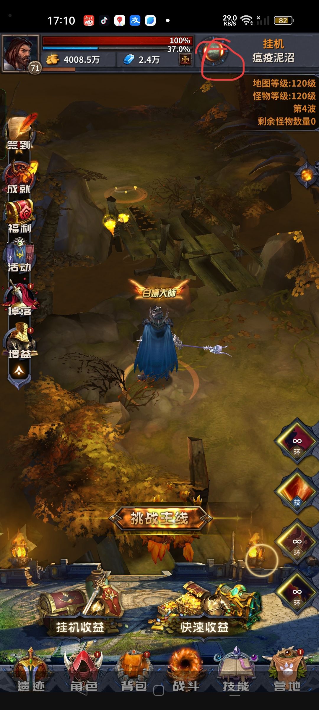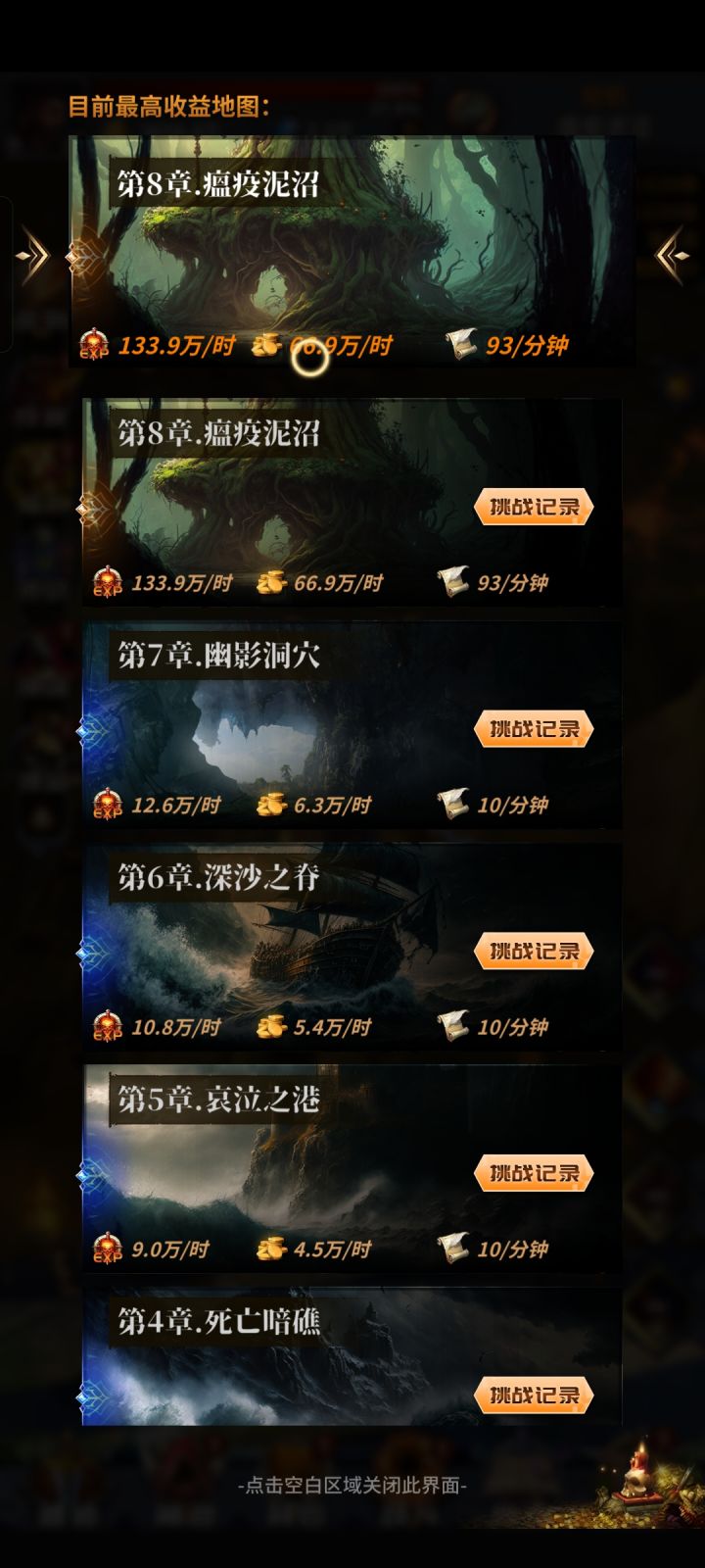 我刚玩了八天前期不知道刷新挂机的记录(第二图)搞得我前期没钱买技能石