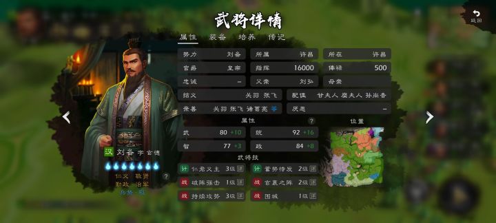 首先君主刘备,自带丹阳和白耗双兵种,不算最强,但前期还算强势(便宜),后期也能凭兵量形成高伤碾压。技能:持续攻势(多动)+仁义君主(范围大奶)+玄襄之阵(眩晕神级)。配合高四维算得上最强的一位君主。