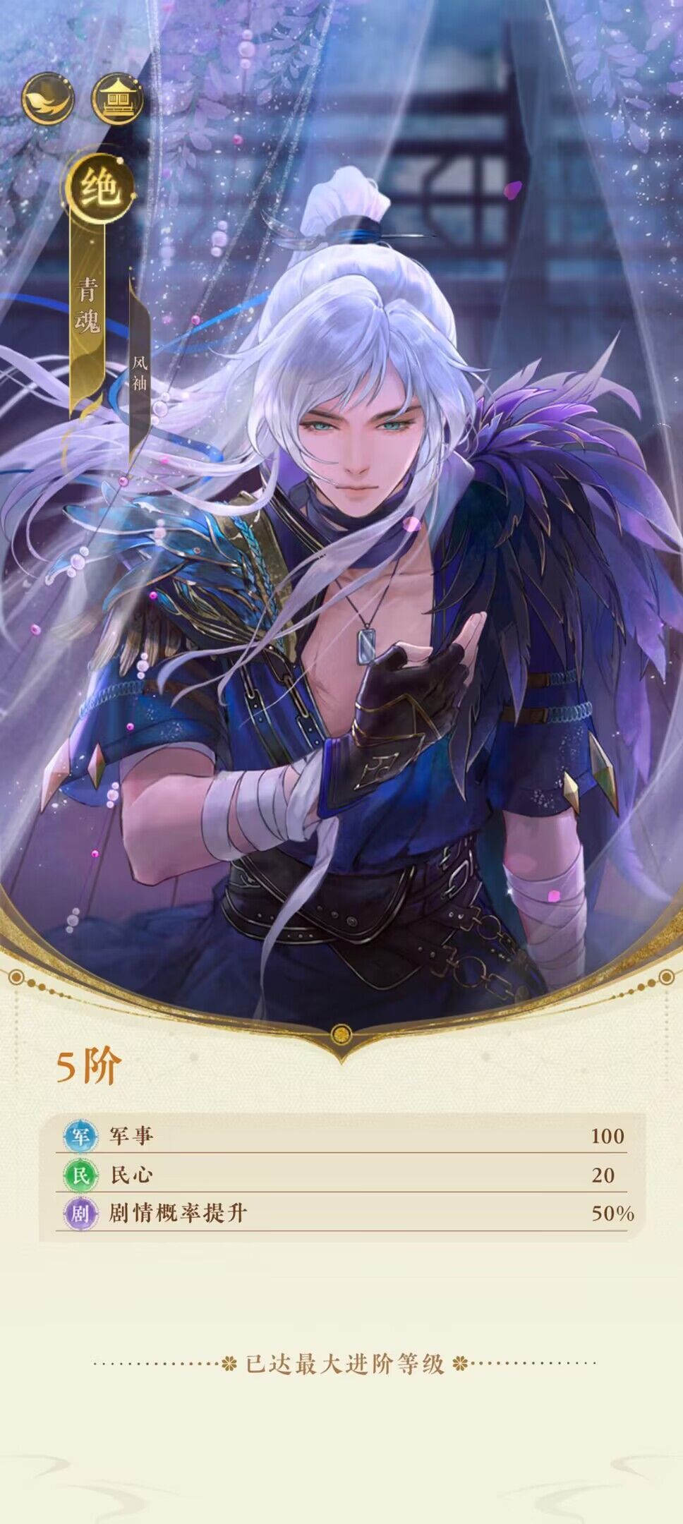 兵部:事件增加【吏政】、【军事】属性,可能邂逅【顾昭】、【萧淮初】。