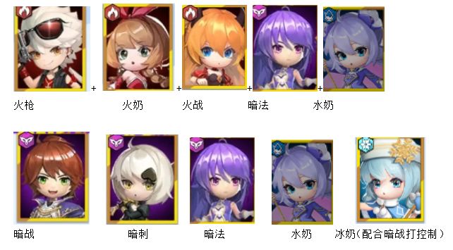 冰元素则以冰弓冰奶为核心,补充前排输出角色,光暗也可放入