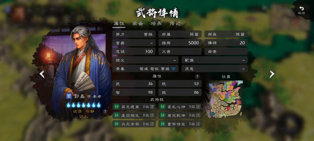 首先是郭嘉不死,卧龙不出的郭嘉,命犯天狼,主杀伐,技能方面:大范围破甲+眩晕+昏头崽+削兵力(能对城池放你敢信还无视防御)+再动+回蓝。配合曹老板的霹雳车,专打扎堆聊天的。