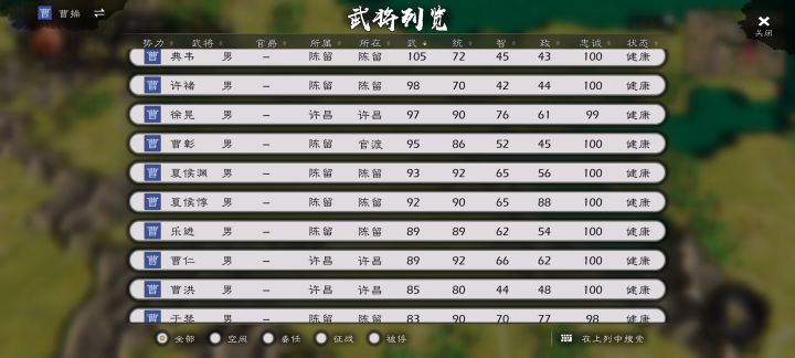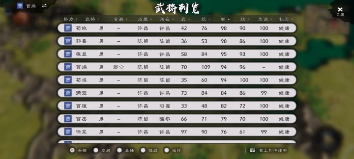 首先,打开190群英剧本,曹魏势力武力和智力按排行分下来,你会发现一个恐怖的事情。