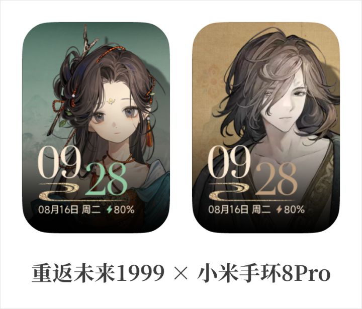 重返未来1999×小米手环8Pro春节联动,官方表盘商店将会上架「尽杯酌」和「善哉行」两款联动表盘,具体样式详见附图