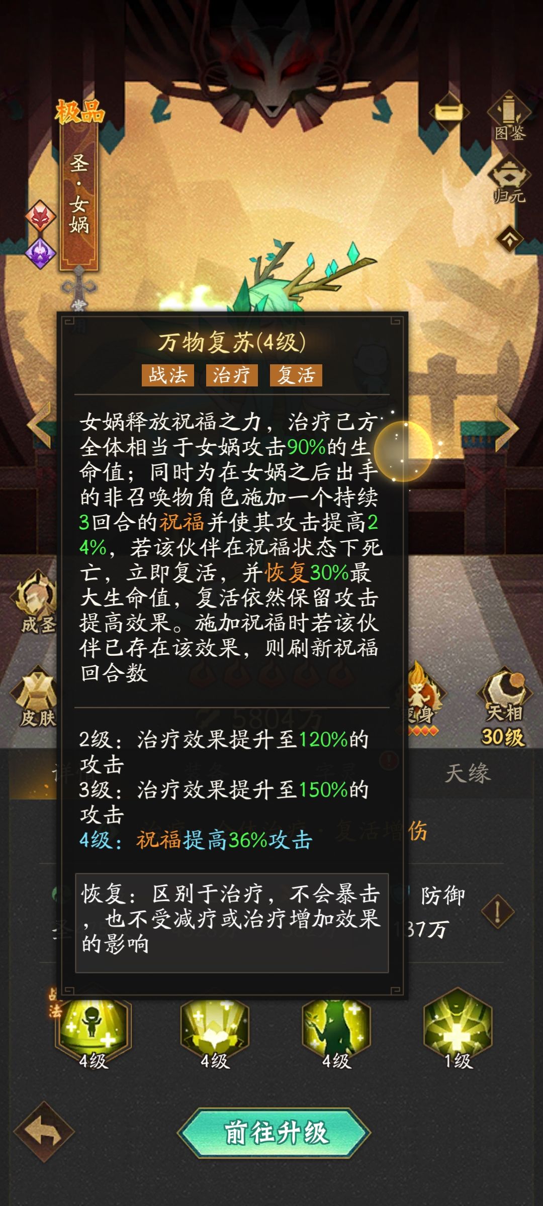 1)女娲受到攻击,治疗己方全体本次伤害48%的生命值