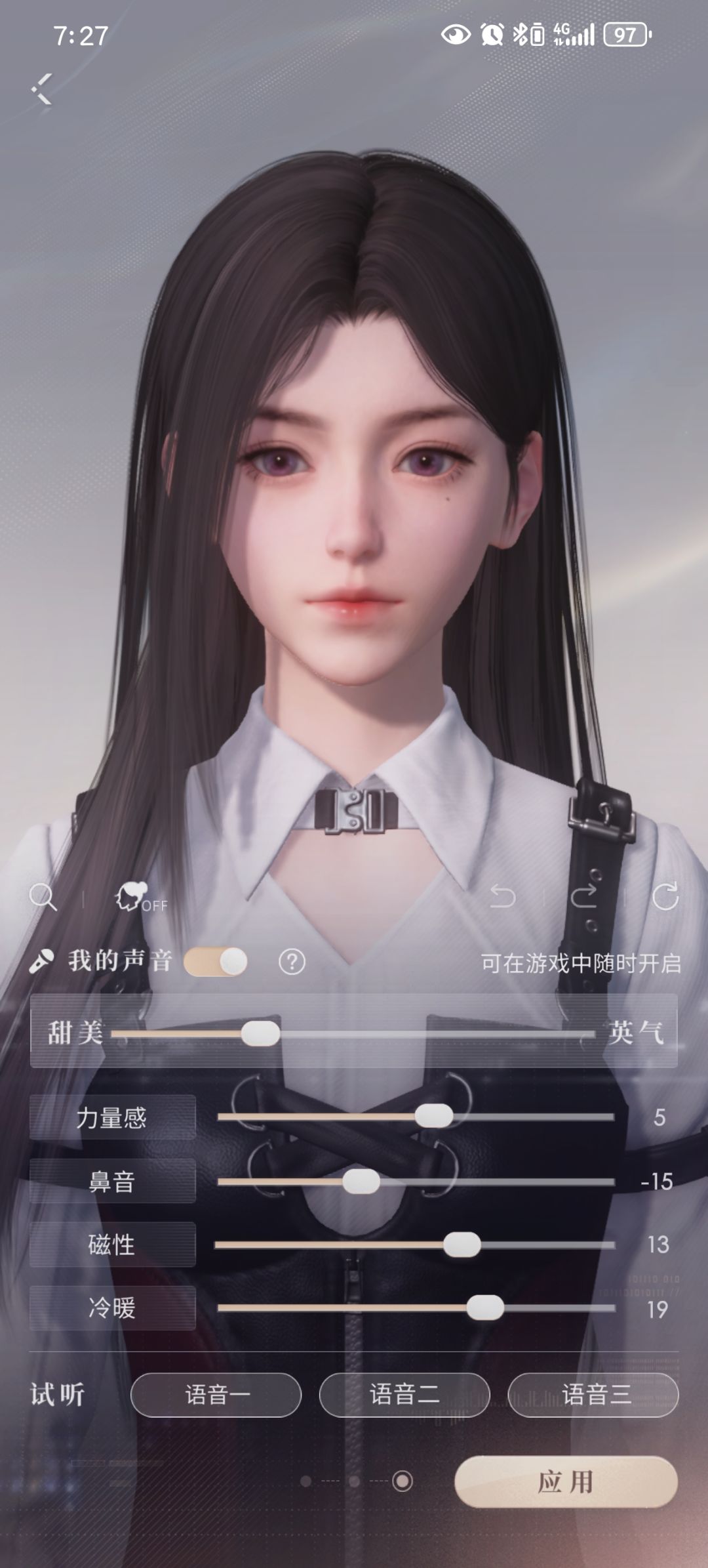 然后就是声音的调整,选了一个清脆微甜的少女音,整体来说还是很喜欢的