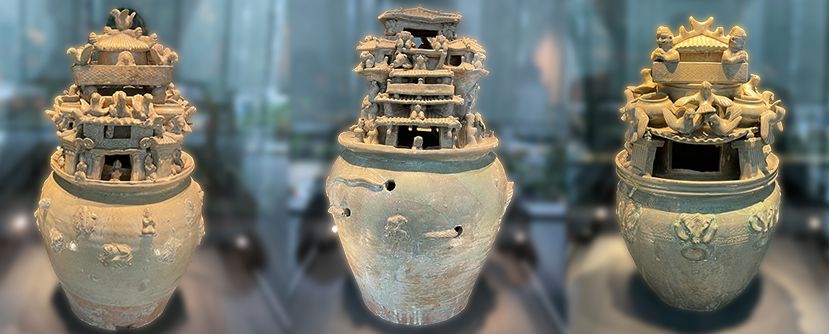 楼阁、仓房、灶台、兽圈、车马、井台、奴仆,人们于魂瓶之上营造出一个个理想的生活环境以供逝者享用,祈求其于阴间平安、灵魂升天。或许在我们看不到的幽冥之界,这一个个魂瓶正创造出千千万万个富足幸福、可与神通的小世界。