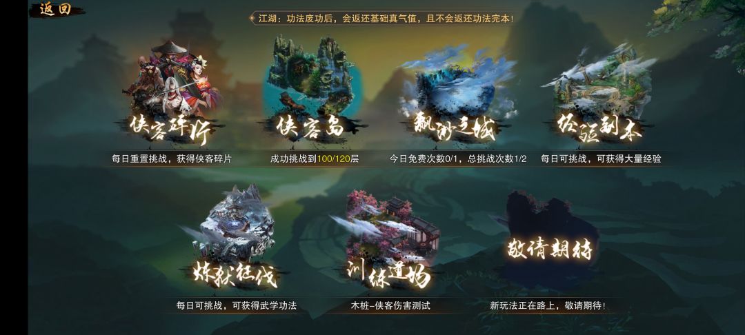 炼狱前期打不过,能打得过一星就刷一星,打得过二星就刷二星,免费次数没了,就打一下等半小时自动刷。功法顺其自然吧,强求不得。
