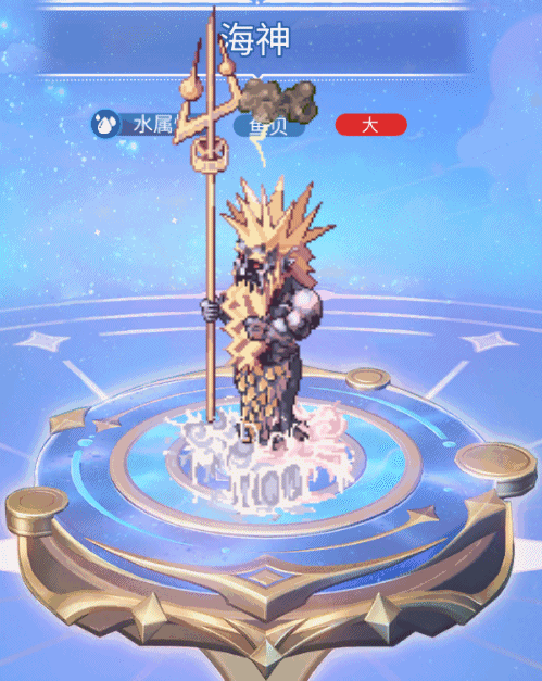 属性:水属性、鱼贝、大;天赋技能:水之减免(被动);技能描述(满级):出站时,提高主人10%水属性伤害减免;宠物每30点物攻和魔攻,会使主人额外获得0.1%水属性伤害减免;获取途径:「元素秘境」海底洞穴。