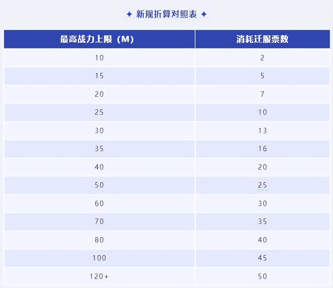 与此同时,游戏的迁服功能也将在本月18号零点上线。对于即将参与永恒之地的战区,迁服时间暂停至2月12日。对于迁服所需的消耗券,如果旧规则所需的迁服券票数小于新规则,那么本次消耗券数将依然按照旧消耗规则进行计算。玩家们可以根据自己的战力等级来计算消耗的迁服票数。