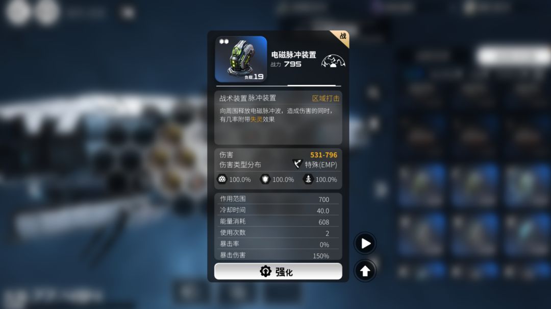 1. 电磁脉冲+跃迁装置,突入敌阵施放群体爆发伤害