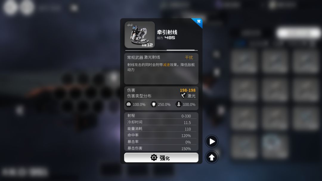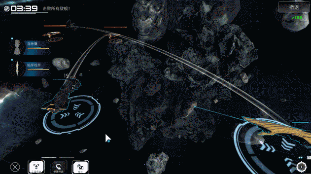 「牵引射线」在这时可以发挥奇效,即使是在面前高速掠过的敌舰,也会被它减缓移速,成为激光主炮的移动标靶,稳稳吃下所有的伤害: