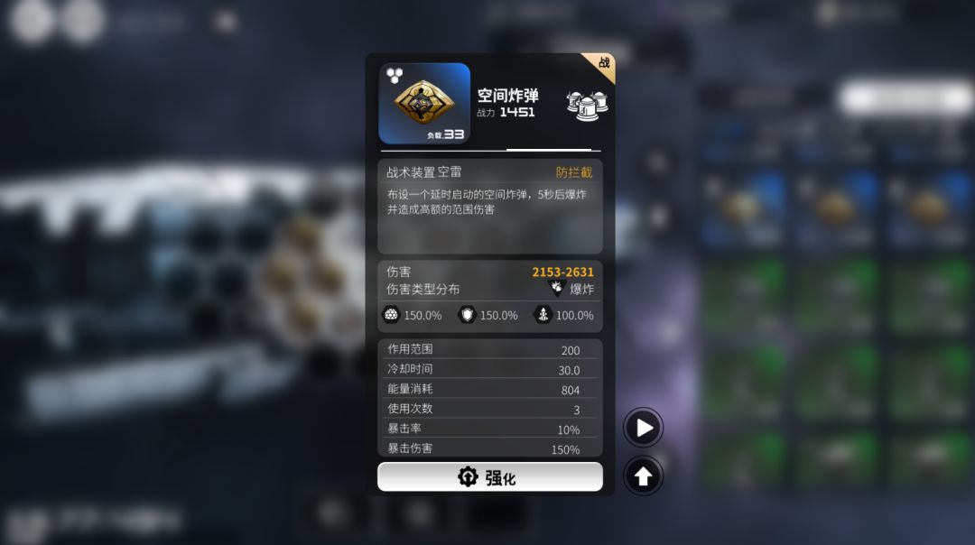 「空间炸弹」、「磁暴力场」、「识别空雷」等“陷阱类”战术装置,拥有极高的伤害,但需要敌舰保持在它们的作用范围内才能够成功命中,这种情况下,范围减速类装置可以说是它们的绝佳搭档。