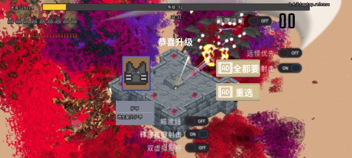 爽感:大剑升级到圣剑四分之一的屏幕都是剑气横扫,什么远程小怪的炮弹都是渣渣原地站着不动剑气就全给扫没了,近战怪和飞行怪站着不动,在靠近你之前就被你干死完了。