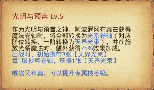 他在获得魔法卷轴时将会全部转换为光系卷轴