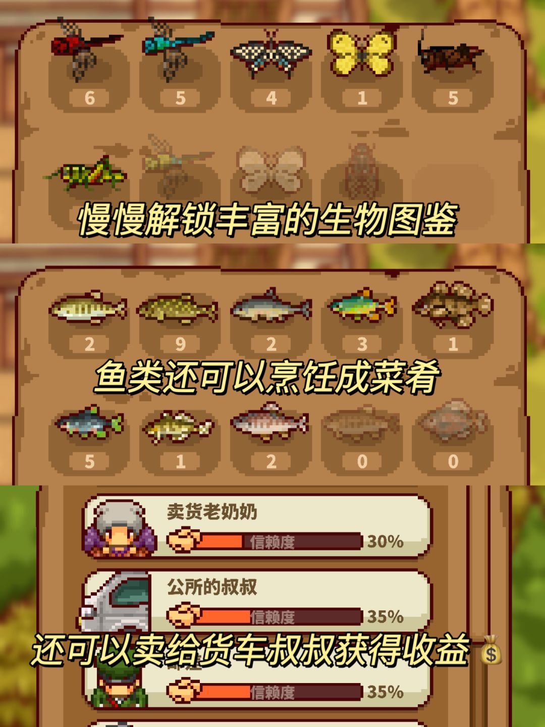 🏡手机上就能肝的像素风种田游戏!集种田养殖、乡村建造、模拟经营为一体,上班摸鱼用来打发时间真的再合适不过了!我们可以体验到日本传统乡下的田园生活,参与各种不同的活动,种植农作物并收获加工,还可以学习制作传统的日式手工艺品,例如编织竹子、制作陶器或者制作纸张等等。