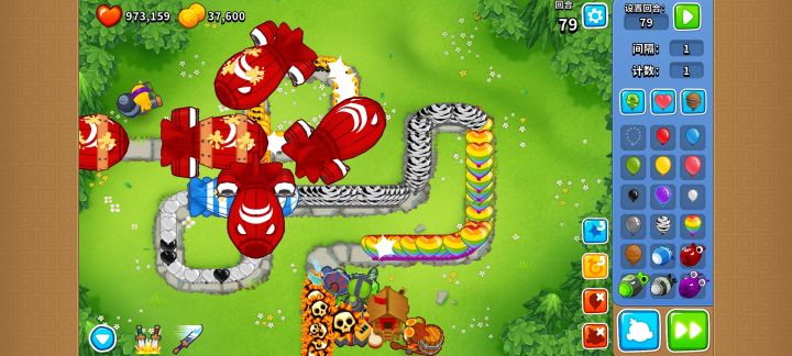 拿79波举例,原本79波击破金总共是13060,但可以利用重生气球的特性一波拿到46000~59000的击破金。