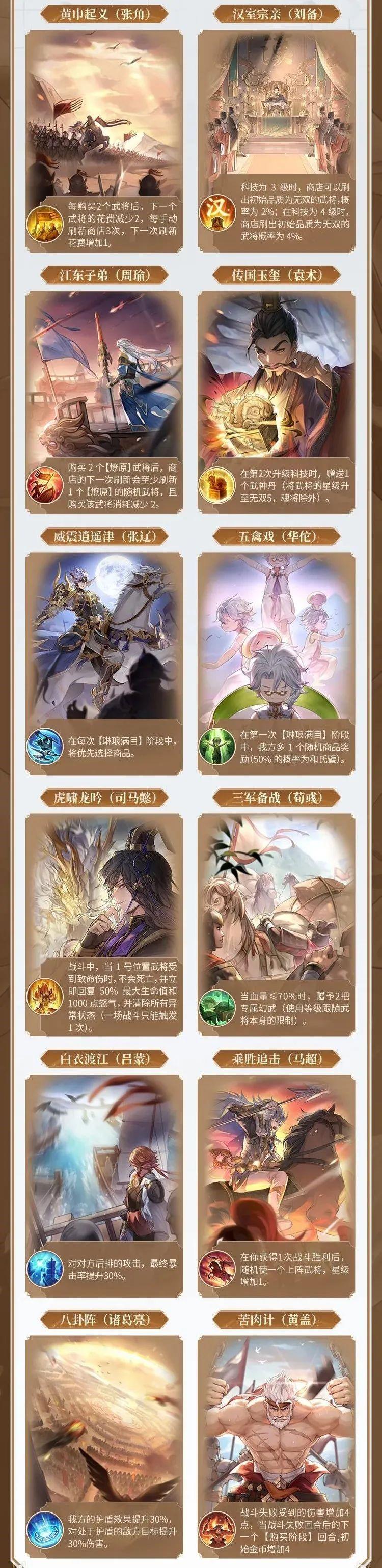 阵容要点:燎原羁绊由于阵容只有一个蓝将,其他武将都是神将,因此开局时应优先选择能够减少阵容花费的阵营技能,如江东子弟、黄巾起义等,在开局时使用盾将以及逐鹿羁绊的武将进行过渡。