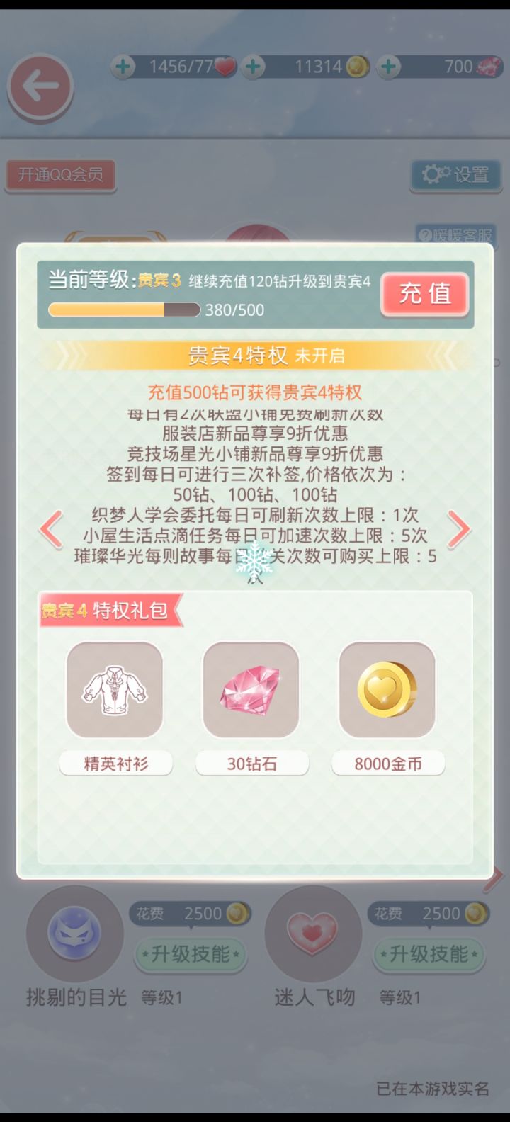 🙋感觉不太喜欢的地方(个人看法,轻喷):有些原来在服装店花钻买的(我都佩服我惊人的记忆力,可能是太喜欢了hhh)现在要充钱才能免费拿。为啥不能重新做一些给VIP(图三的衬衫,我之前一直很喜欢胸前瀑布的设计,我记得原来是服装店用钻买,可能记错了)