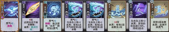 金丹:为了提前上本和后期,尽量选修为,水灵传承(泉涌或水阵后期是核心牌)>雷劫>顿悟>其他2牌仙命>机缘造化>葫芦。每轮换牌1次。