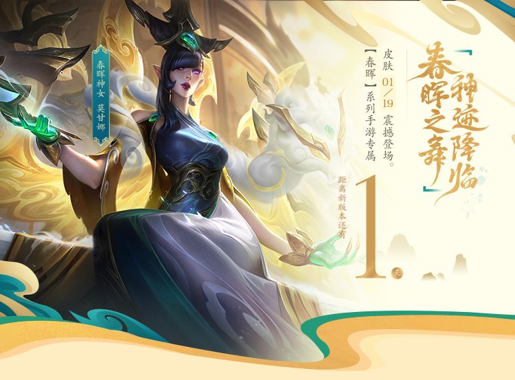 金龙盘踞,众神云集。春晖众神系列皮肤将于1月19日震撼登场,这场盛大筵席的主持者——春晖神女 莫甘娜身着新装在万众瞩目中华丽亮相!一起随隆哥来欣赏这位神女的华服~