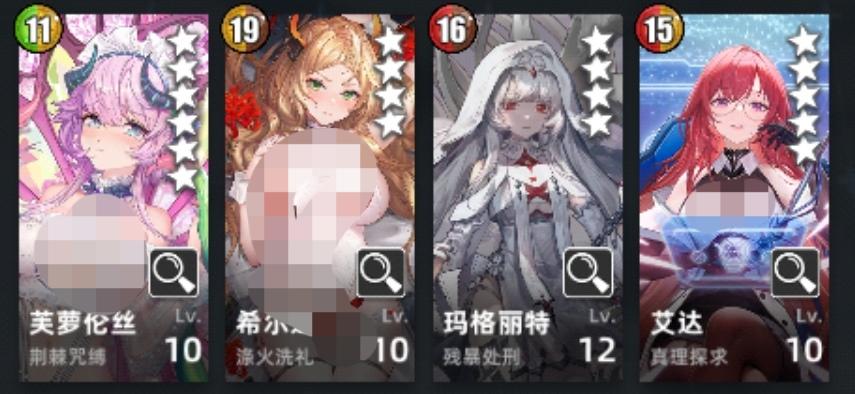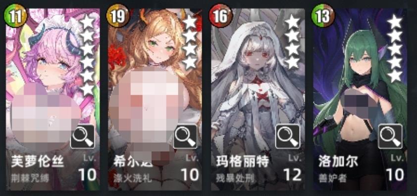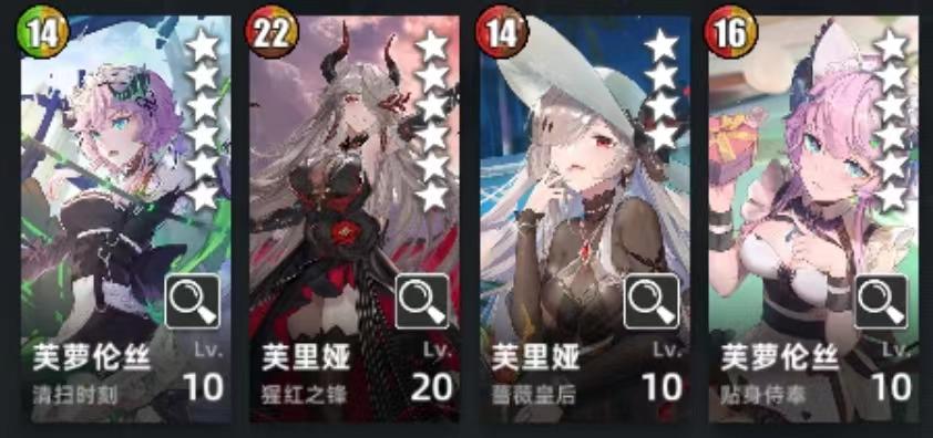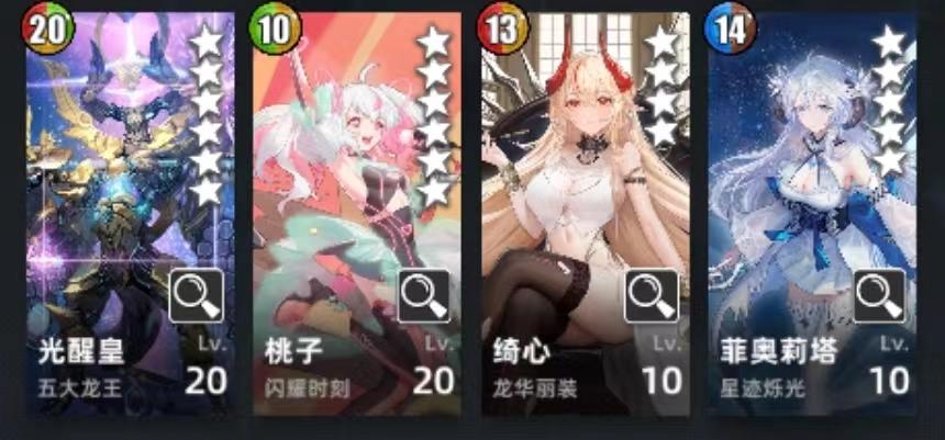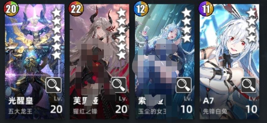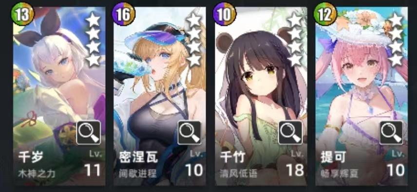 我只能优化到下图这样了,打不了高层,低层效率低,自动有点呆。龙华是人龙和千岁额外回合条件冲突。这个密涅瓦涨灵力效率太低了,尽管人型翻倍依然没法看。药剂被坑了,只能打日常。