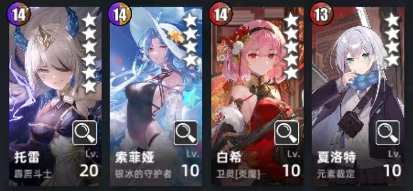 芙队是本周最优选。下面两图是低层和高层的配队。高低层的分界线大概是玉尘不叠甲,芙最多3轮清场的分界。大概我开5包是60层左右。具体可以根据开包和练度调节。