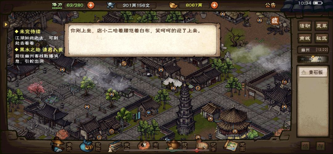 再去幽州客栈放假消息,完成后获得7两