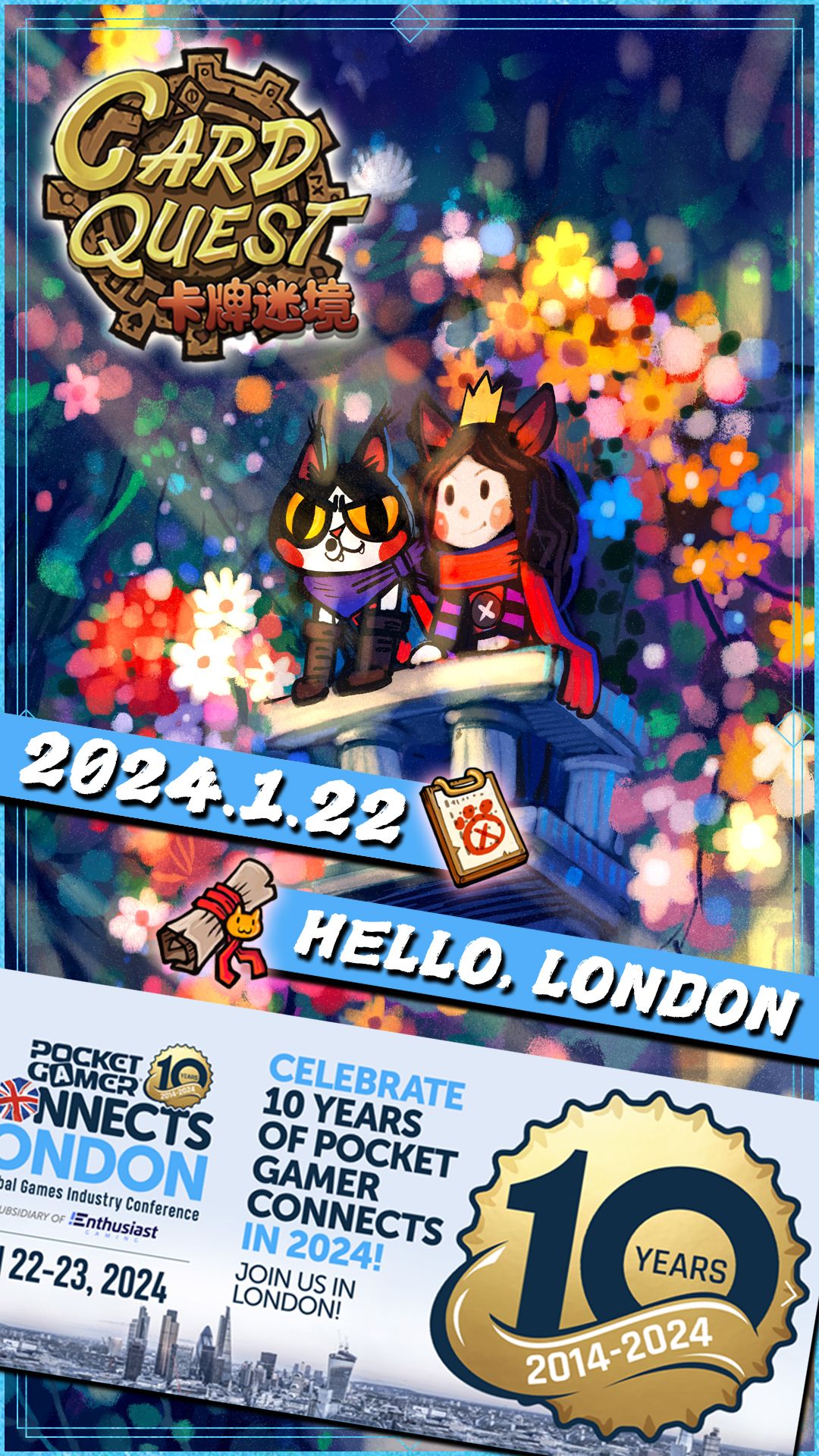《卡牌迷境》即将参加伦敦Pocket Gamer Connects(全球移动游戏产业大会)国际展会,咱要去异国他乡见新朋友啦,希望艾琳和艾斯的故事可以让更多人知道o(* ̄▽ ̄*)o