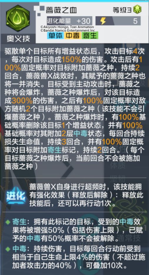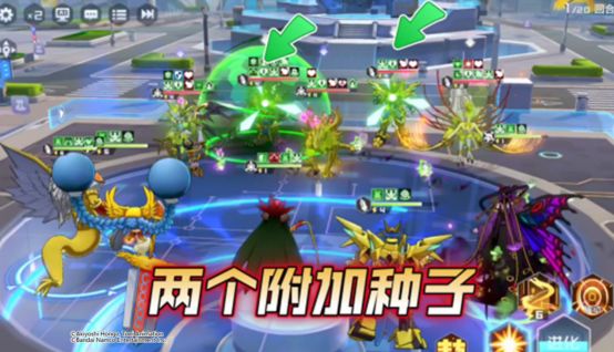 我们先从描述的内容说起,如果攻击带蔷薇之种的目标,其本身还会被附加种子吗?答案是:会的,但又不是,哈哈,什么意思?图一中,凤凰兽X带有蔷薇之种,爆炸后,黄龙兽被附加种子,但少一颗,原因就是给到了原目标凤凰兽X,当这种情况出现时,原目标不会被附加第二次,就是技能描述最后一句话所言。