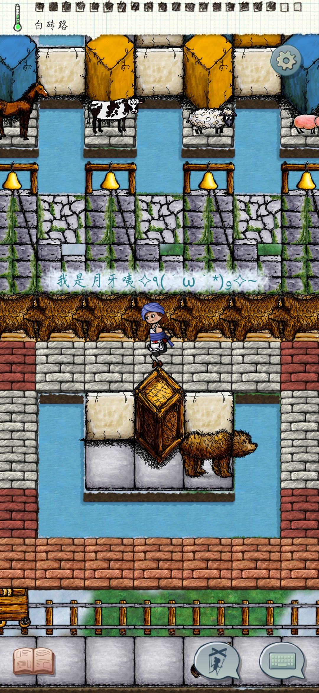 自己设计的钟楼加上一排小动物在那里罚站。
