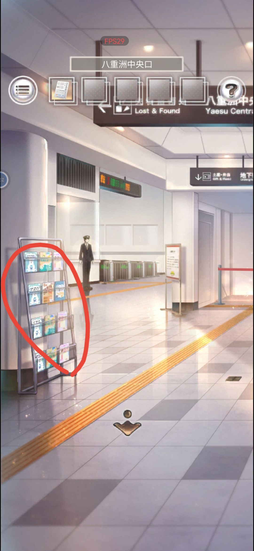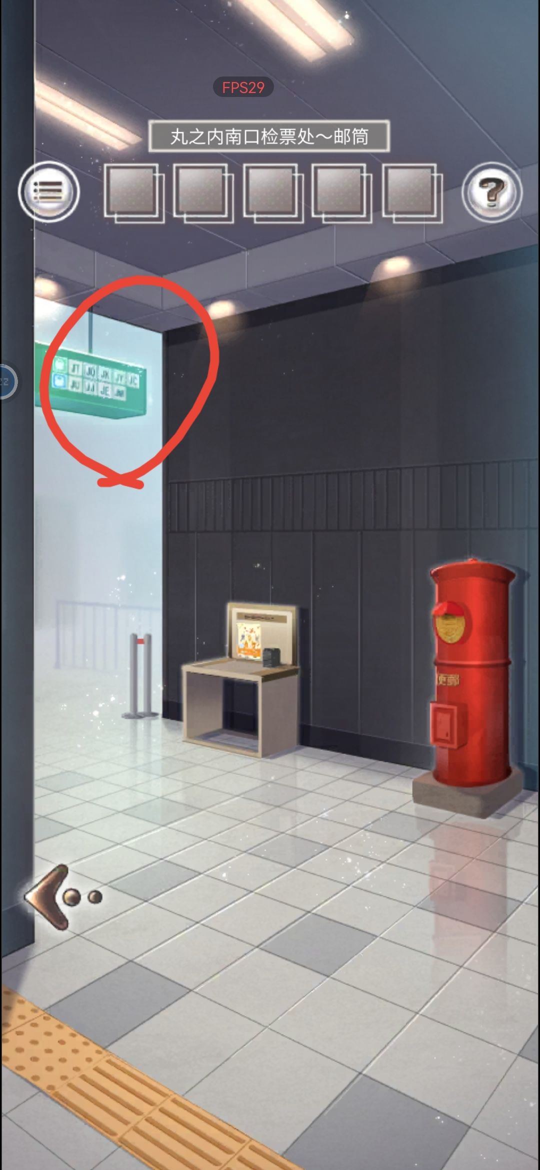 2.站外右转,点击上方牌子,得知对应字母KEY,返回失物招领处输入