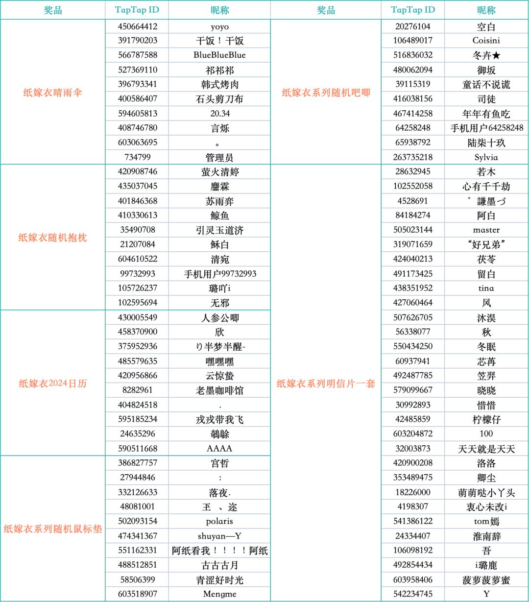 另外,红包封面兑换码已经通过 TapTap 站内信发放给以下玩家,请及时领取,以防过期哦~