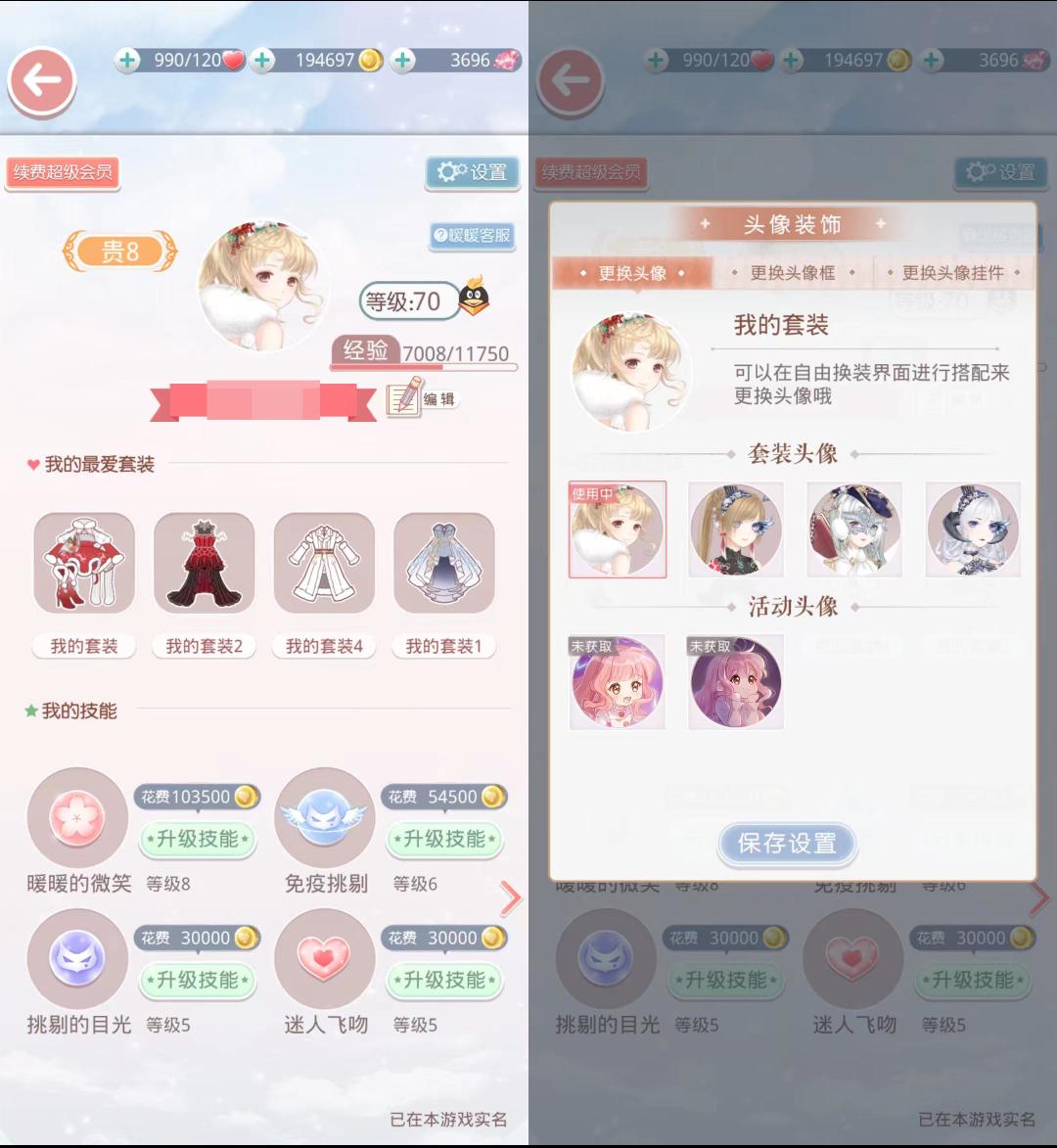 萌新搭配师们还可以在左上角的头像中,点击头像,进行套装头像设置,将展示在主界面的套装与头像进行统一哦!