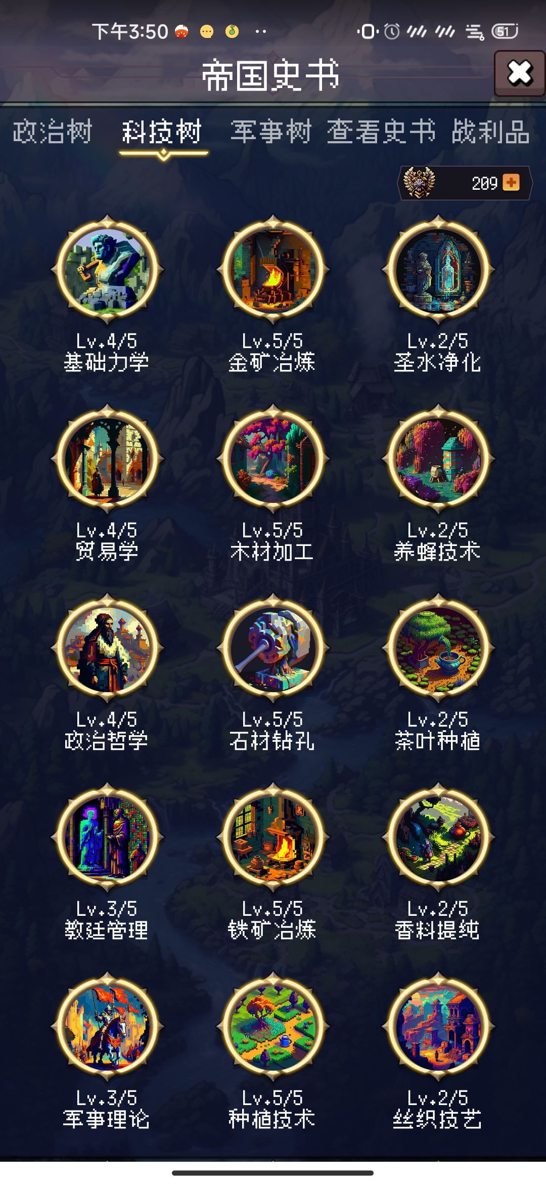 科技树:第一列全部三级以上,能满就满