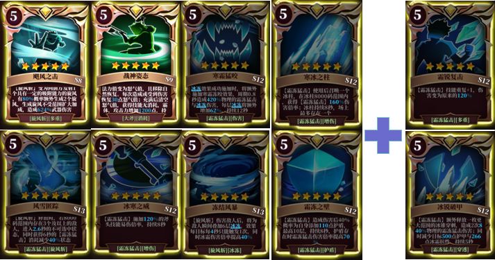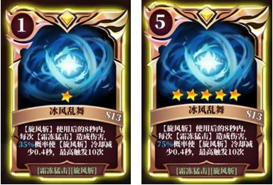 【冰风乱舞】---因为这张卡的1星效果和5星效果减CD都是4秒所以不自带,当然如果卡牌无法凑齐上面的组合,也可以带这张,最多减面4秒CD,而旋风斩CD仅4.8秒。