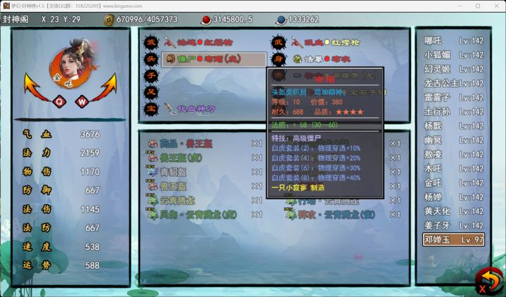 作为从预感各个版本封神榜一路走过来的老玩家,游戏里的装备特性是最强的变强秒天秒地的途径之一,遥想当年装备通过五周目装备可以拥有五个特性词条,更新之后也能拥有好几个词条,例如群攻的乾坤战无法无天等,加血复活的平心慈航普度等,以后最最恶心却又是推图刷怪打boss的各种主动被动BUFF各种负面状态,诸如僵尸石化剧毒等,以及后期通关黄河阵打三宵是需要法术防御词条特性金钟罩就是不二最佳选择,减少50%的法术伤害,这些主动技能是能通关爆装备获得的,毫不夸张的说,组合搭配回怒一套装备 ,轻松通过各种难关关卡,预祝大家都能打到心仪的词条特性装备。