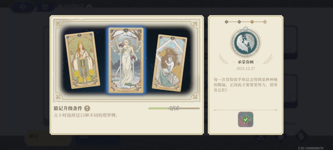 承蒙眷顾:使用不同的塔罗牌占卜,加buff或米,材料