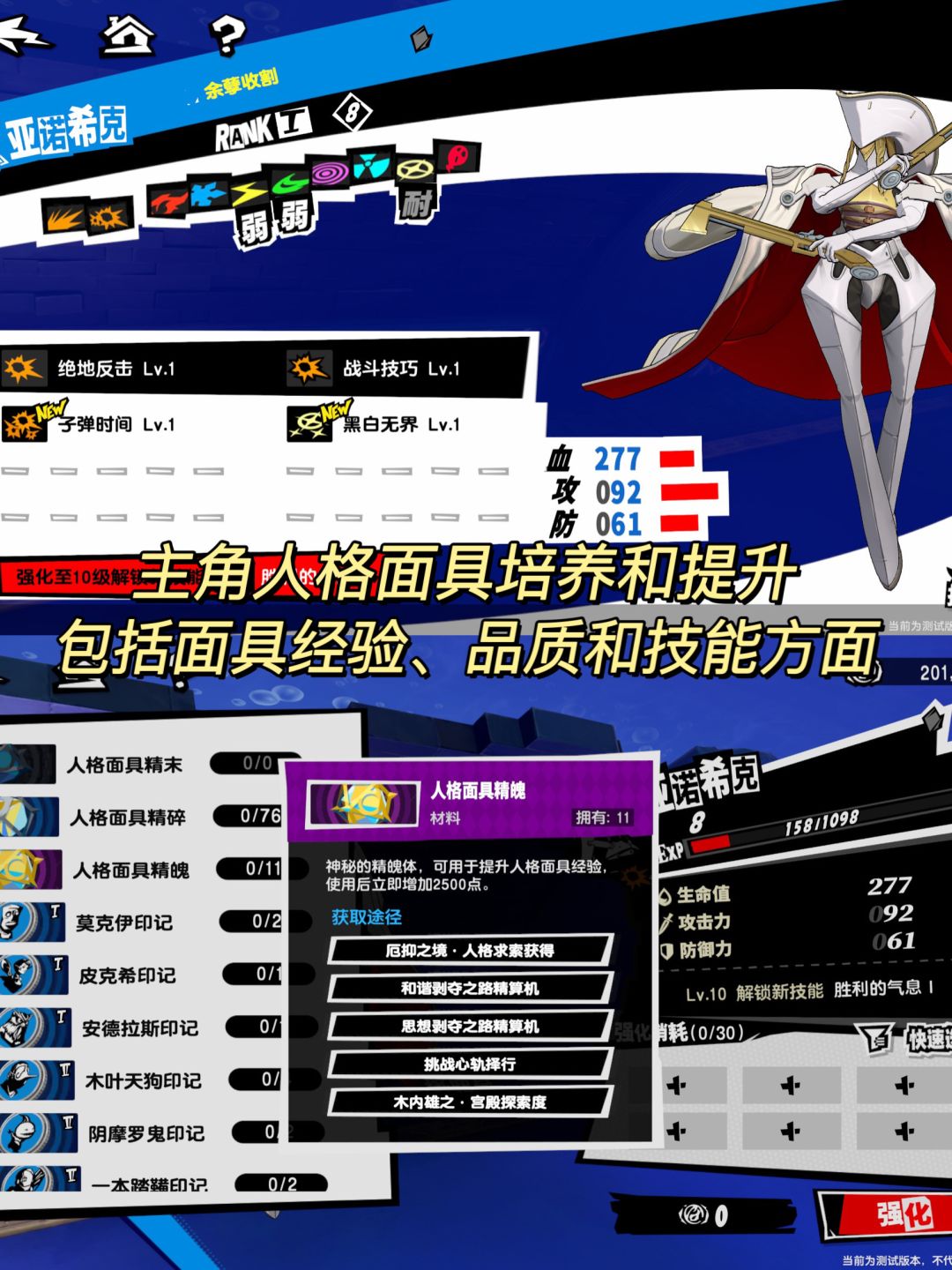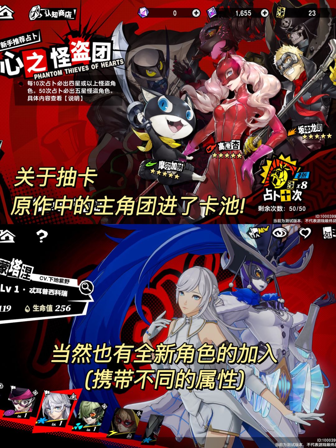 ⭕️另外,再说说不足之处,如果你是玩过P5R的玩家,那么对前期的新手教程和引导会较快适应;但对于纯新玩家而言前期的节奏并不算快,基本上是剧情→解锁功能→剧情→解锁下一个功能的模式。但在尊重原作和适应手游市场之间确实也很难取舍,关于这点各位就仁者见仁智者见智吧。接下来是付费模式,肉眼可见P5X的角色养成池子是非常深的,从角色本身再到面具培养和提升,以及面具技能和武器池等,除了肝度比较强,同时还需要你有一定的“钞能力”。