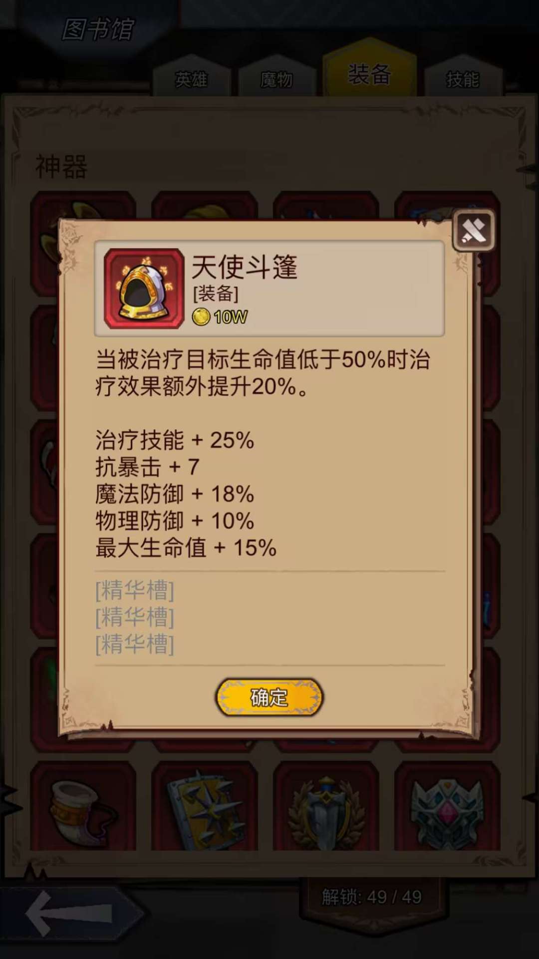 天使斗篷:治疗系神装,属性全面。一种主pve,治疗、双防。第二种主竞技场,速度和双防