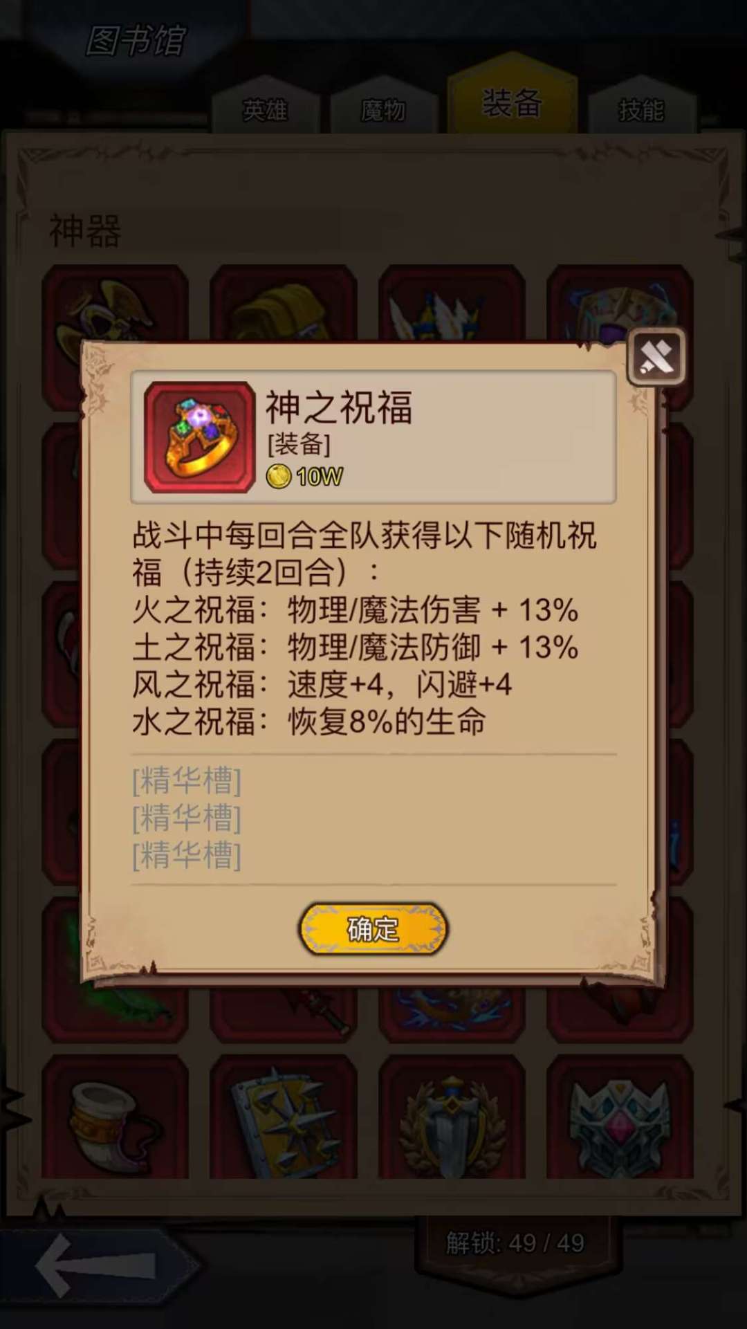 神之祝福:辅助装备,速度、双防,适合辅助治疗。