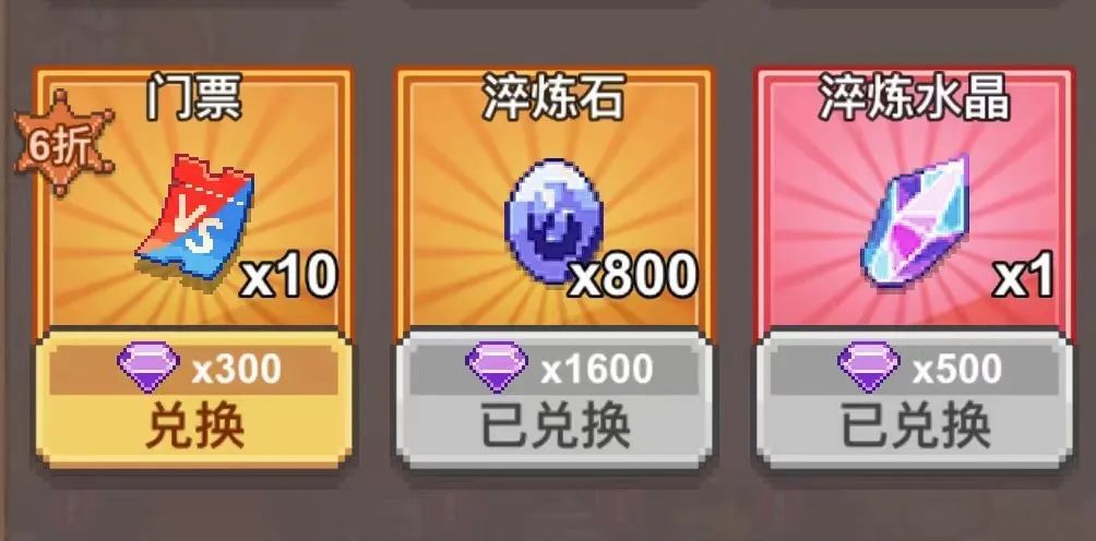总结:除了随机紫色碎片和门票没有必要外,其他的材料都可以购买,甚至购买几轮。
