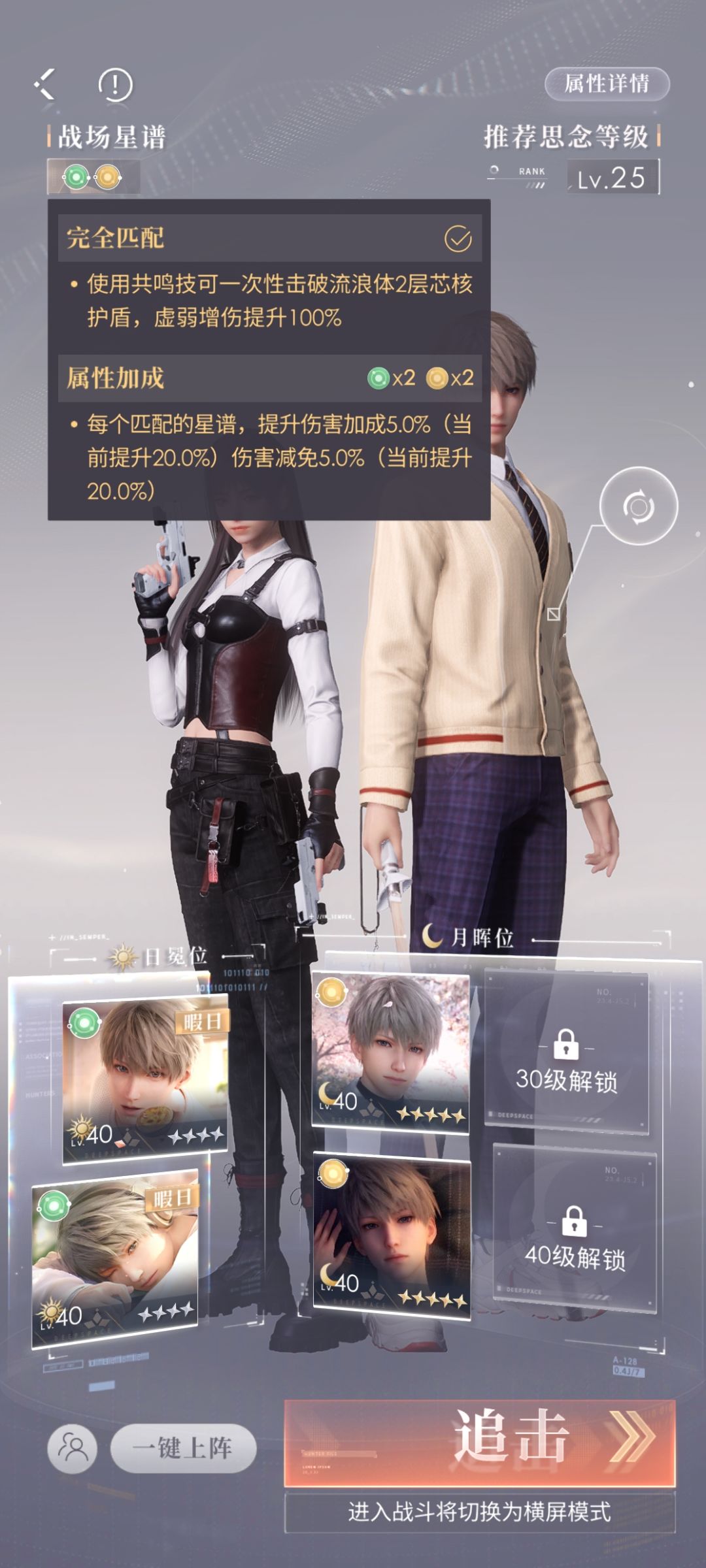 主升日冕位 副升五星黄卡月晖位,其他补色位四星卡可以平均升或者先不升,打不过需要补属性再适当升级