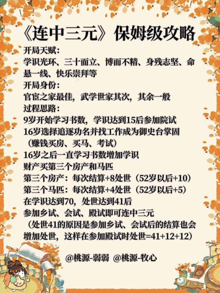 在学识达到70,处世达到41后,参加乡试、会试、殿试即可连中三元