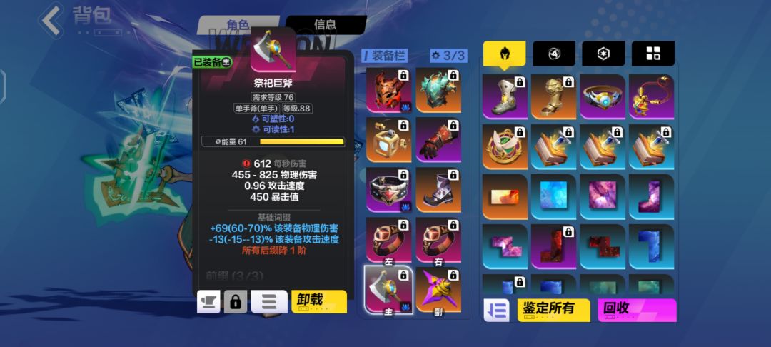 底子必选祭祀斧子,基础点伤高近一倍