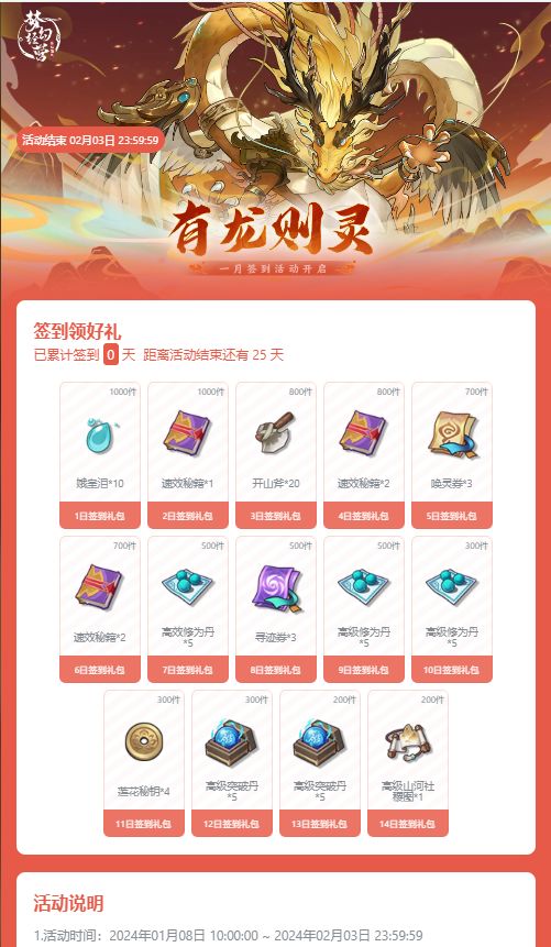 官方每月一期的签到活动也可以参与一下,对于0氪玩家来说免费的奖励拿到就是赚到!