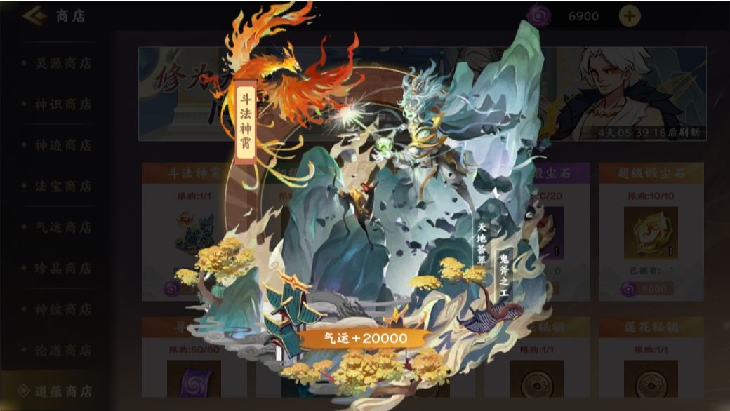 还有大道演武--问鼎巅峰里的道蕴商店,使用道蕴可以购买神迹--斗法神宵,增加20000气运。