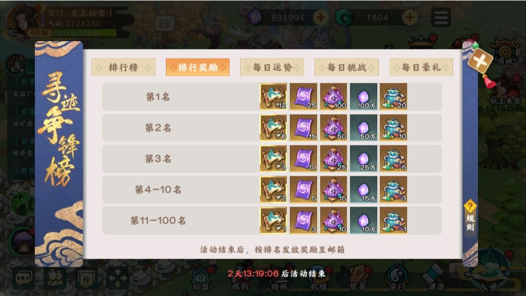 参加大道争锋活动---寻迹争锋榜,上榜的奖励也是很不错的。