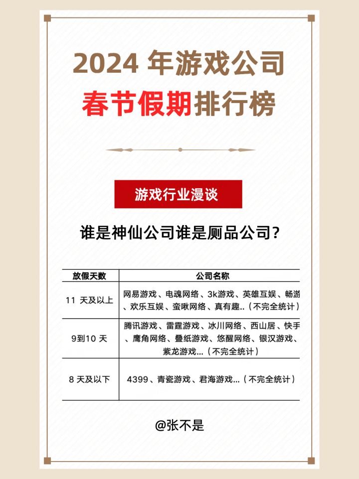 2024 年游戏公司春节放假排行榜,看谁拉跨