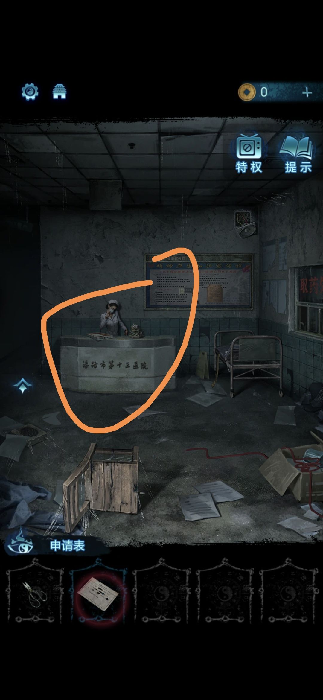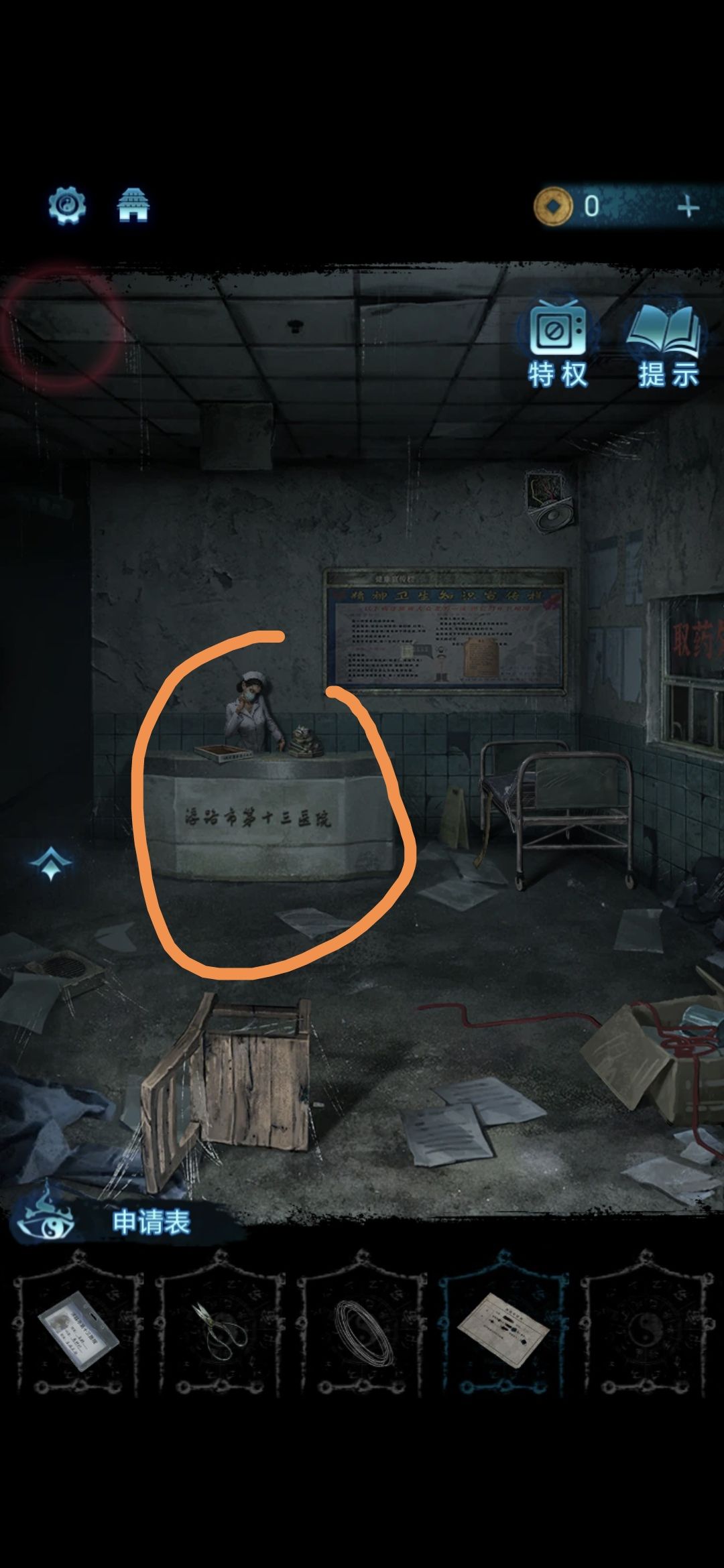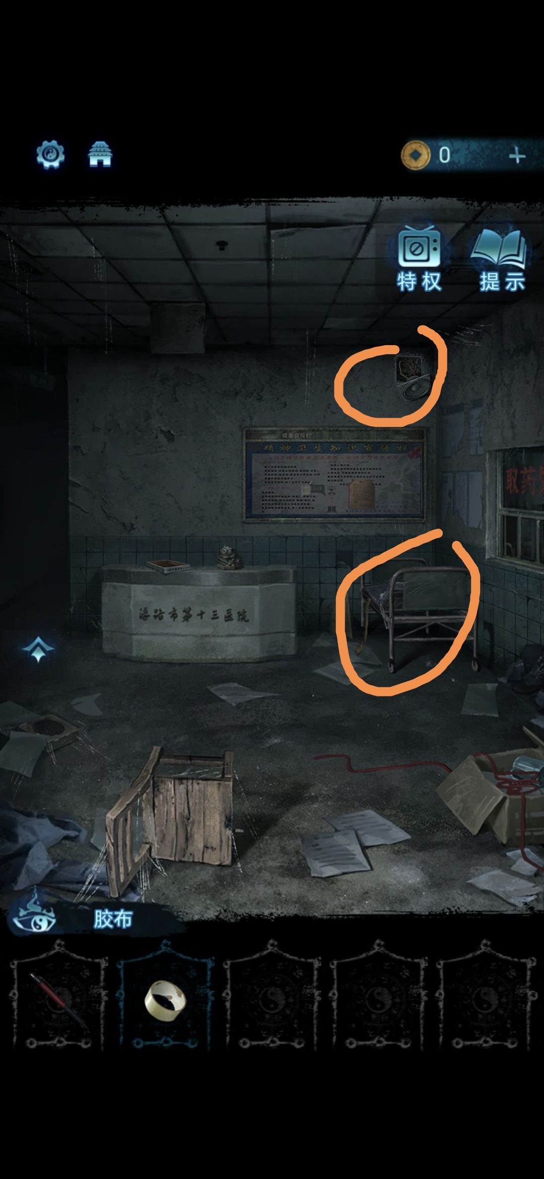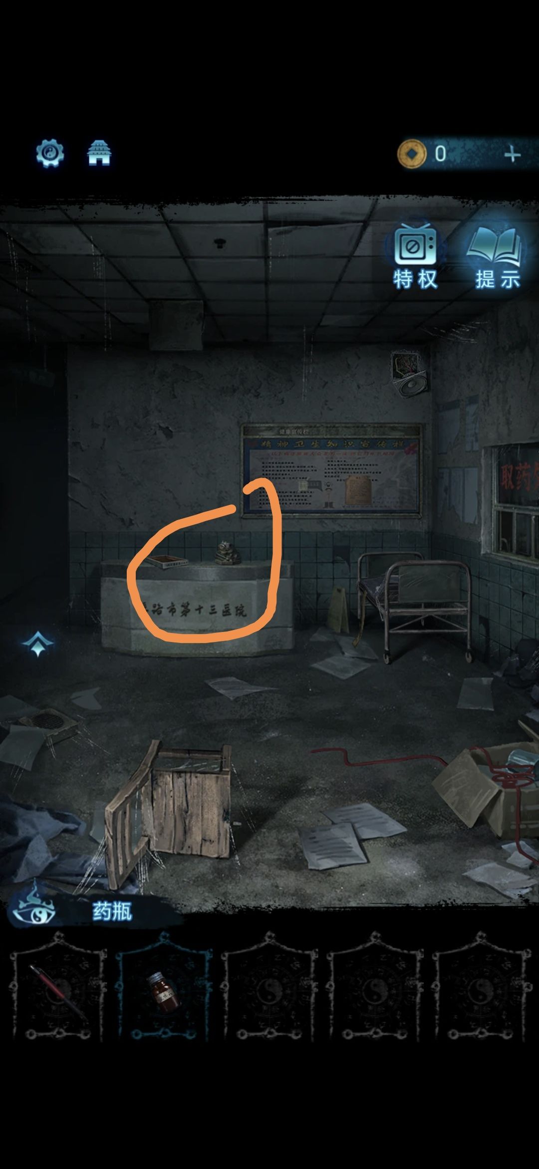 把大厅右侧的床推开,点击右上方的喇叭,用胶布把电线粘好,即可在大厅右侧窗口点击获得药瓶