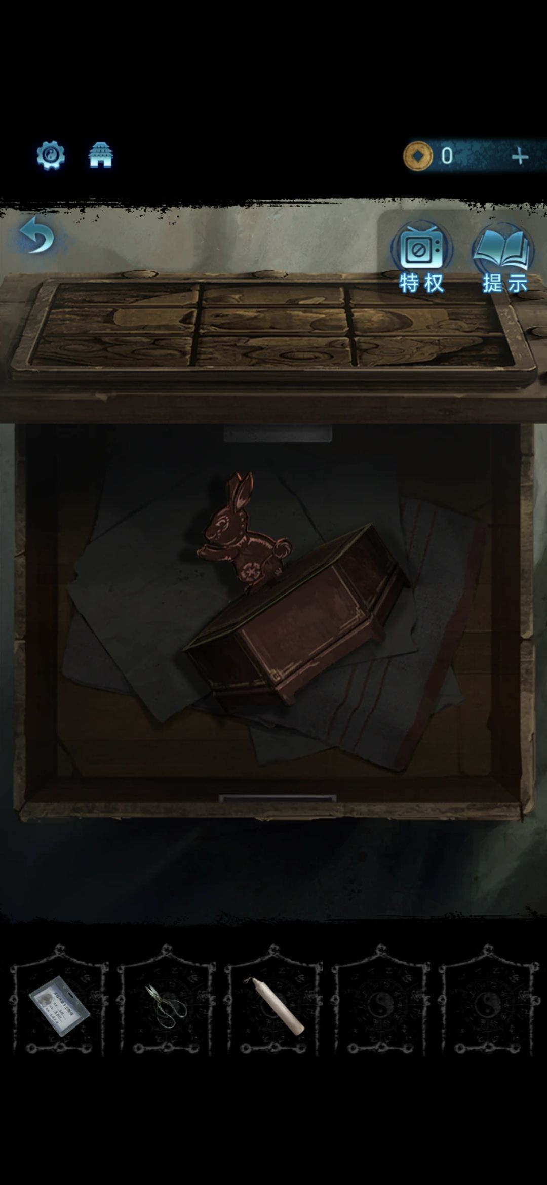 进入房间,掀开床上的布,点击盒子,做拼图小游戏,打开盒子,获得兔子八音盒